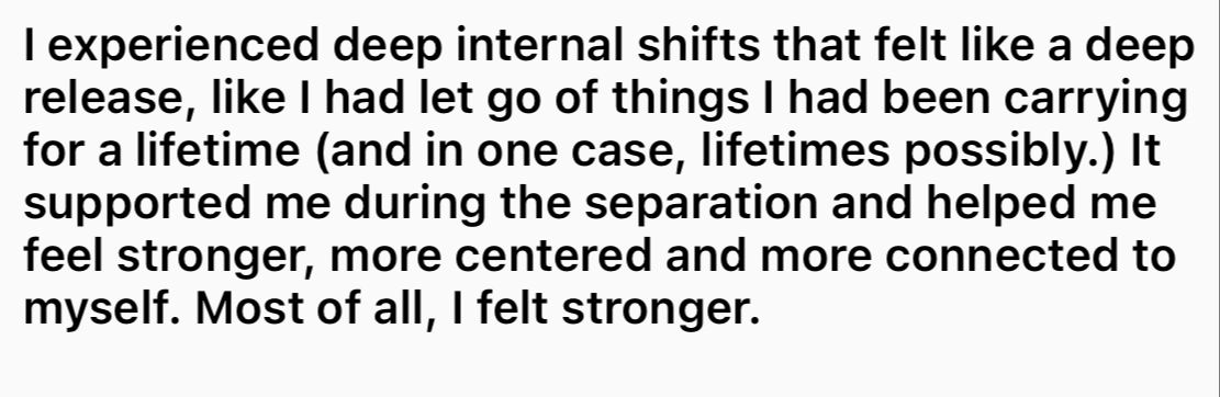 ✓ Reclaimed a sense of inner peace, self-trust, and wholeness that no one could take from you.